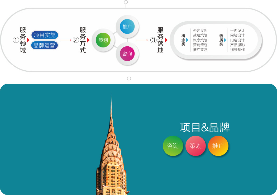 我們提供:項目全程策劃、推廣。營銷一站式的活兒我們全得干!為了養(yǎng)家糊口,這些手藝活兒我們也得干:LOGO設計、VI設計、門戶網站。